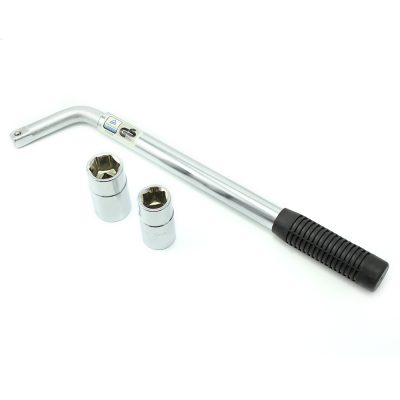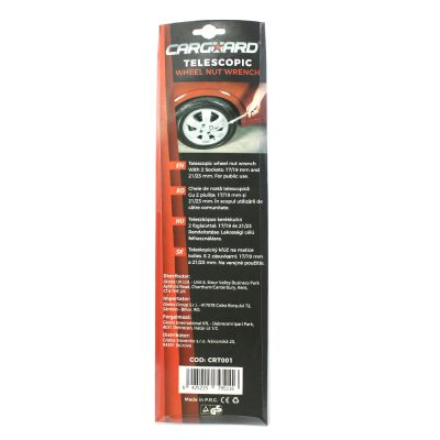 Cheie de roata telescopica din otel rezistent, ideala pentru majoritatea autoturismelor. Include doua capete duble (17/19 mm si 21/23 mm), maner extensibil pentru forta sporita si prindere cauciucata anti-alunecare.